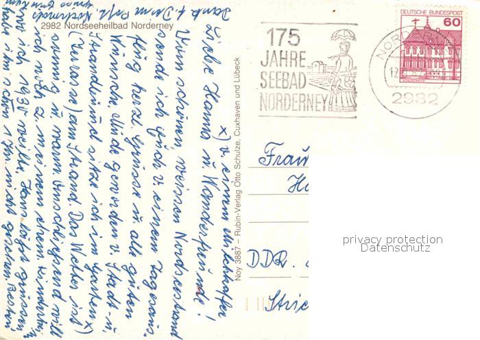 72707258 alte Postkarte Norderney Nordseebad Denkmal Faehrschiff Kaiserstr Meerwasserwellenbad Poststr Napoleonschanze Strand Kurhaus postalisch gelaufen Erhaltung siehe scans [WerneD78] KatCode: 11110003452020