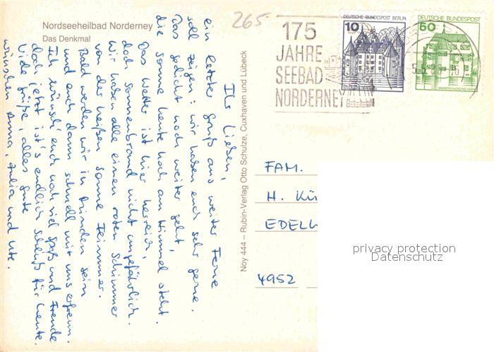 72670200 alte Postkarte Norderney Nordseebad Denkmal postalisch gelaufen Erhaltung siehe scans [LiesaD40] KatCode: 11110003452020