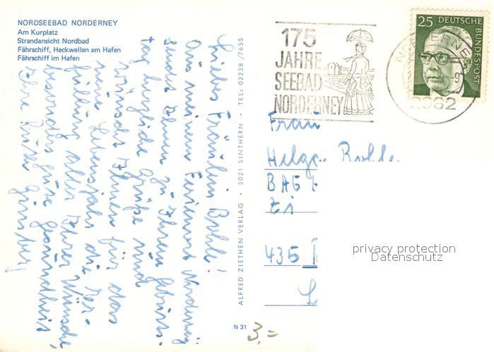 73093654 alte Postkarte Norderney Nordseebad Faehrschiff Hafen Kurplatz postalisch gelaufen Erhaltung siehe scans [NatalD47] KatCode: 11110003452020