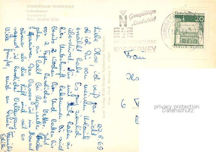 73204402 alte Postkarte Norderney Nordseebad Fliegeraufnahme postalisch gelaufen Erhaltung siehe scans [FriedD77] KatCode: 11110003452020