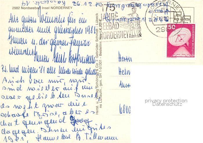 73159738 alte Postkarte Norderney Nordseebad Fliegeraufnahme postalisch gelaufen Erhaltung siehe scans [FriedD77] KatCode: 11110003452020