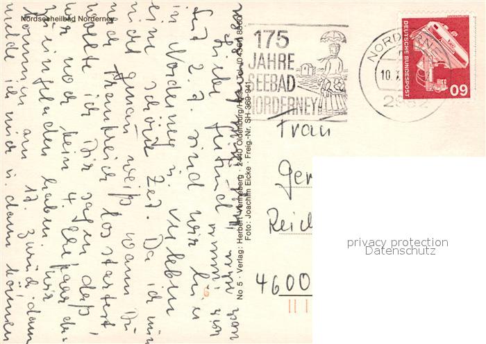 73121206 alte Postkarte Norderney Nordseebad Fliegeraufnahme postalisch gelaufen Erhaltung siehe scans [LiesaD40] KatCode: 11110003452020