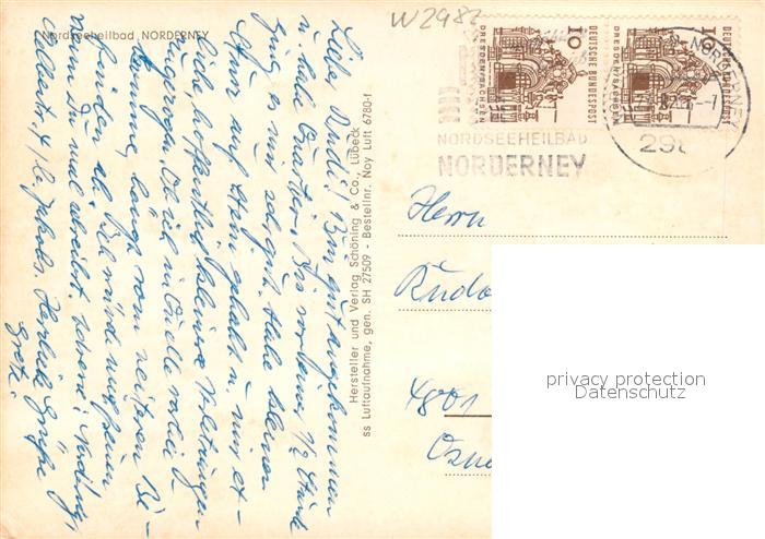 73111895 alte Postkarte Norderney Nordseebad Fliegeraufnahme postalisch gelaufen Erhaltung siehe scans [NatalD47] KatCode: 11110003452020