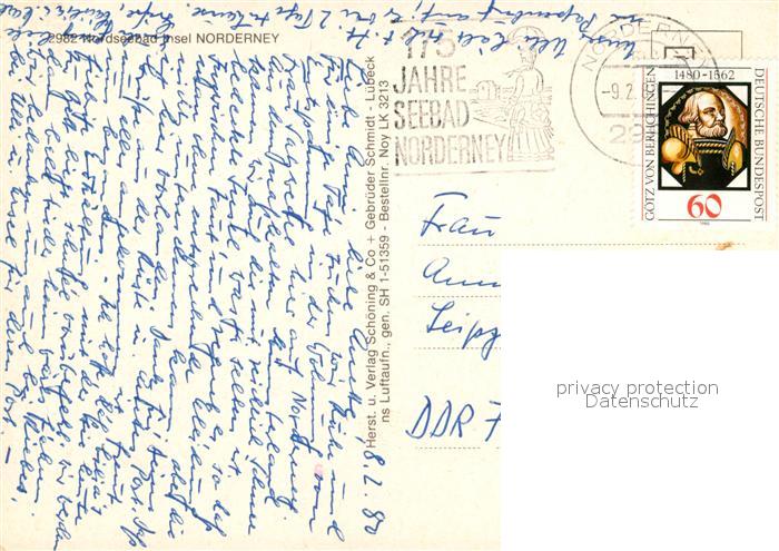 73104941 alte Postkarte Norderney Nordseebad Fliegeraufnahme postalisch gelaufen Erhaltung siehe scans [WerneD78] KatCode: 11110003452020