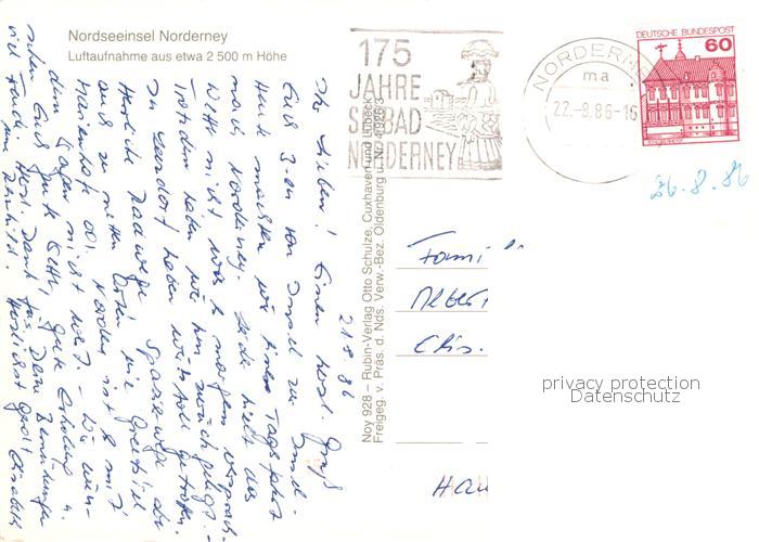 73836881 alte Postkarte Norderney Nordseebad Fliegeraufnahme postalisch gelaufen Erhaltung siehe scans [FriedD77] KatCode: 11110003452020