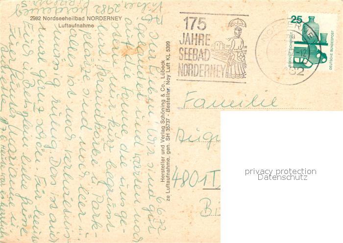 73080631 alte Postkarte Norderney Nordseebad Fliegeraufnahme postalisch gelaufen Erhaltung siehe scans [KathaD81] KatCode: 11110003452020