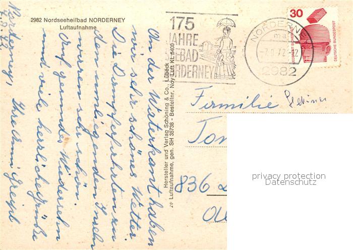 73026524 alte Postkarte Norderney Nordseebad Fliegeraufnahme postalisch gelaufen Erhaltung siehe scans [KathaD81] KatCode: 11110003452020