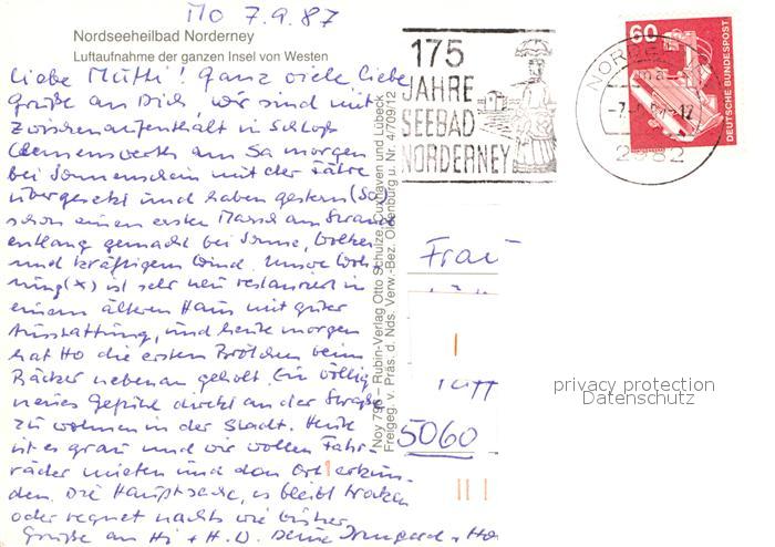 73011178 alte Postkarte Norderney Nordseebad Fliegeraufnahme postalisch gelaufen Erhaltung siehe scans [WerneD78] KatCode: 11110003452020