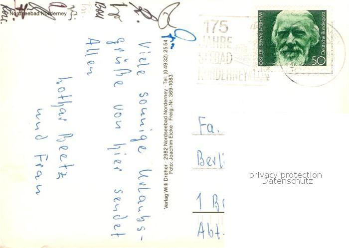 73010326 alte Postkarte Norderney Nordseebad Fliegeraufnahme postalisch gelaufen Erhaltung siehe scans [WerneD78] KatCode: 11110003452020
