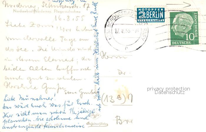 73833527 alte Postkarte Norderney Nordseebad Fliegeraufnahme postalisch gelaufen Erhaltung siehe scans [FriedD77] KatCode: 11110003452020