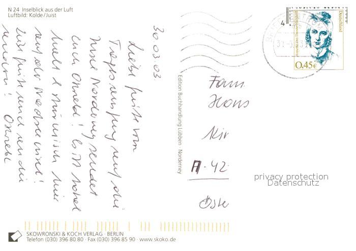 72961823 alte Postkarte Norderney Nordseebad Fliegeraufnahme postalisch gelaufen Erhaltung siehe scans [NatalD47] KatCode: 11110003452020