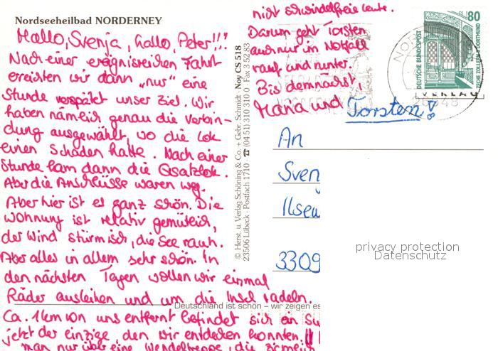 72959970 alte Postkarte Norderney Nordseebad Fliegeraufnahme postalisch gelaufen Erhaltung siehe scans [WerneD78] KatCode: 11110003452020