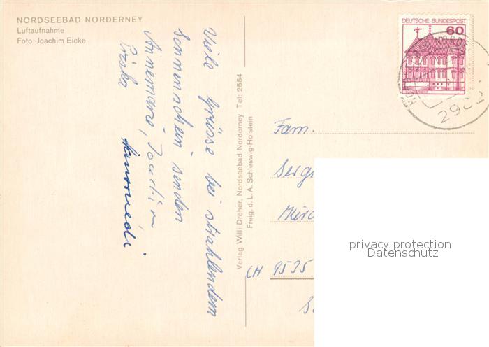72951761 alte Postkarte Norderney Nordseebad Fliegeraufnahme postalisch gelaufen Erhaltung siehe scans [NatalD47] KatCode: 11110003452020