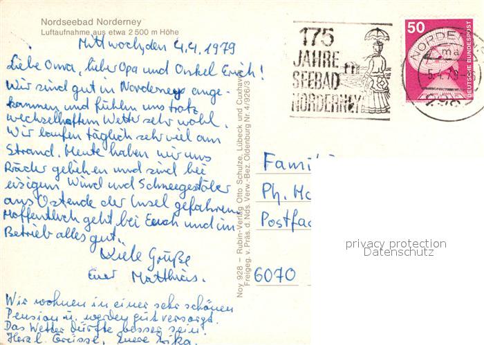72946926 alte Postkarte Norderney Nordseebad Fliegeraufnahme postalisch gelaufen Erhaltung siehe scans [KathaD81] KatCode: 11110003452020