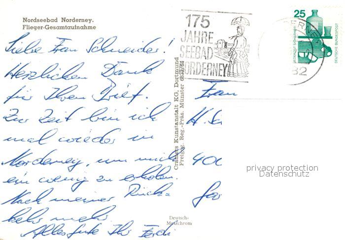 72937180 alte Postkarte Norderney Nordseebad Fliegeraufnahme postalisch gelaufen Erhaltung siehe scans [LiesaD40] KatCode: 11110003452020