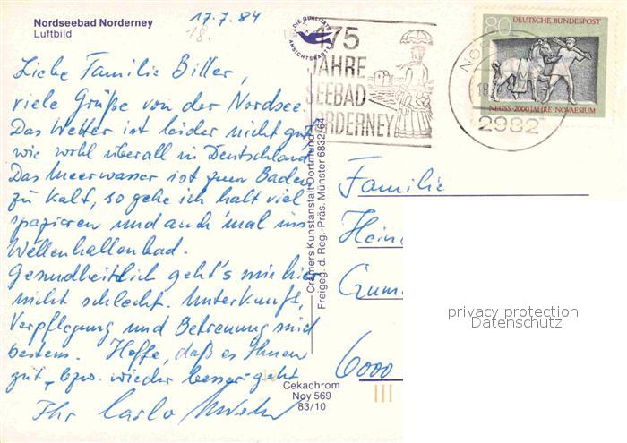 72930559 alte Postkarte Norderney Nordseebad Fliegeraufnahme postalisch gelaufen Erhaltung siehe scans [FriedD77] KatCode: 11110003452020