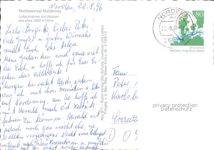 72448681 alte Postkarte Norderney Nordseebad Fliegeraufnahme postalisch gelaufen Erhaltung siehe scans KatCode: 11110003452020
