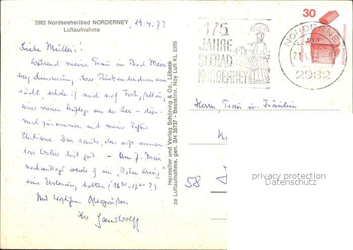 72314217 alte Postkarte Norderney Nordseebad Fliegeraufnahme postalisch gelaufen Erhaltung siehe scans KatCode: 11110003452020