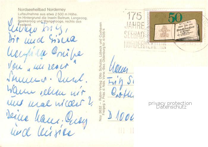 73767368 alte Postkarte Norderney Nordseebad Fliegeraufnahme postalisch gelaufen Erhaltung siehe scans [FriedD77] KatCode: 11110003452020