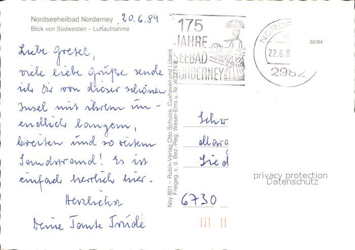 72170392 alte Postkarte Norderney Nordseebad Fliegeraufnahme postalisch gelaufen Erhaltung siehe scans KatCode: 11110003452020