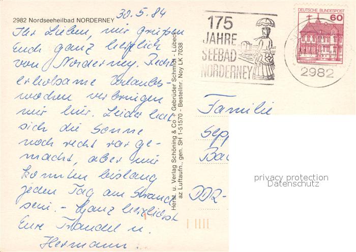 73745856 alte Postkarte Norderney Nordseebad Fliegeraufnahme postalisch gelaufen Erhaltung siehe scans [FriedD77] KatCode: 11110003452020