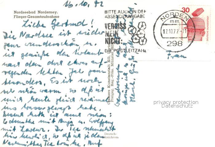 73742793 alte Postkarte Norderney Nordseebad Fliegeraufnahme postalisch gelaufen Erhaltung siehe scans [WerneD78] KatCode: 11110003452020