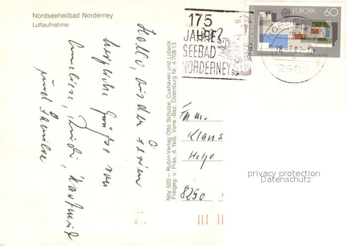 73714857 alte Postkarte Norderney Nordseebad Fliegeraufnahme postalisch gelaufen Erhaltung siehe scans [WerneD78] KatCode: 11110003452020