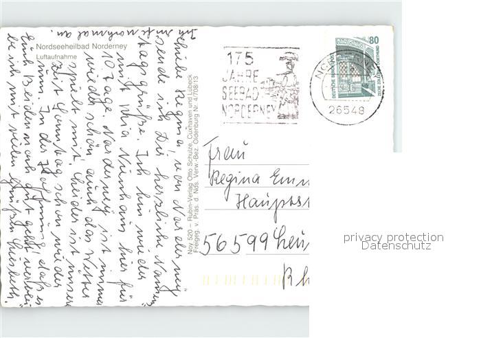 72014415 alte Postkarte Norderney Nordseebad Fliegeraufnahme Fahrgastschiff postalisch gelaufen Erhaltung siehe scans KatCode: 11110003452020
