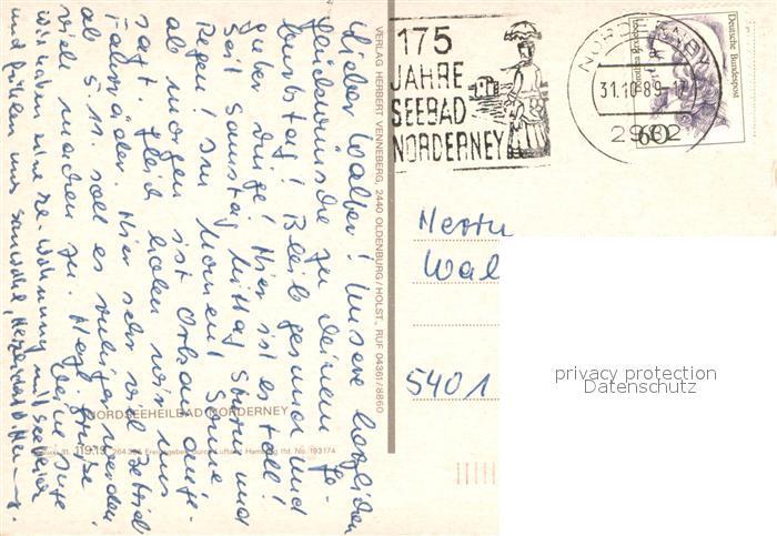 73727723 alte Postkarte Norderney Nordseebad Fliegeraufnahme Gesamtansicht postalisch gelaufen Erhaltung siehe scans [LiesaD40] KatCode: 11110003452020