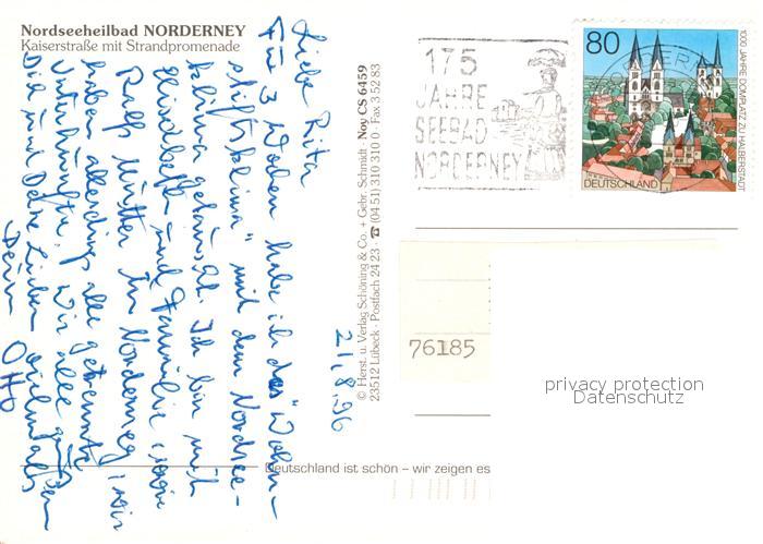 72931553 alte Postkarte Norderney Nordseebad Fliegeraufnahme Kaiserstrasse Strandpromenade postalisch gelaufen Erhaltung siehe scans [KathaD81] KatCode: 11110003452020