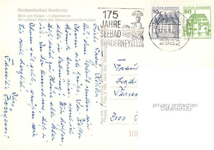 73013455 alte Postkarte Norderney Nordseebad Fliegeraufnahme Meerwasserwellenfreibad postalisch gelaufen Erhaltung siehe scans [NatalD47] KatCode: 11110003452020