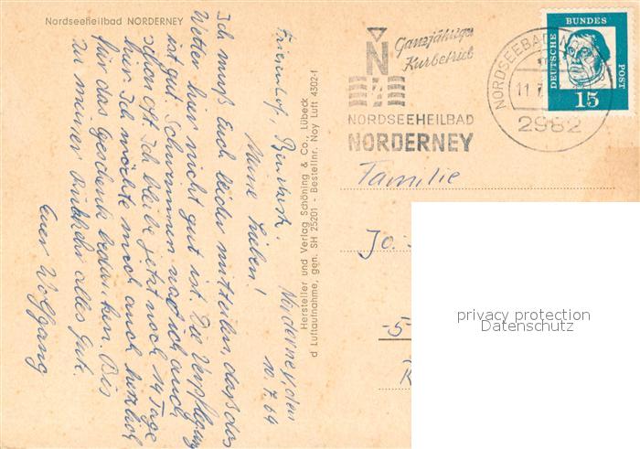 73727754 alte Postkarte Norderney Nordseebad Fliegeraufnahme Teilansicht m. Kueste postalisch gelaufen Erhaltung siehe scans [LiesaD40] KatCode: 11110003452020