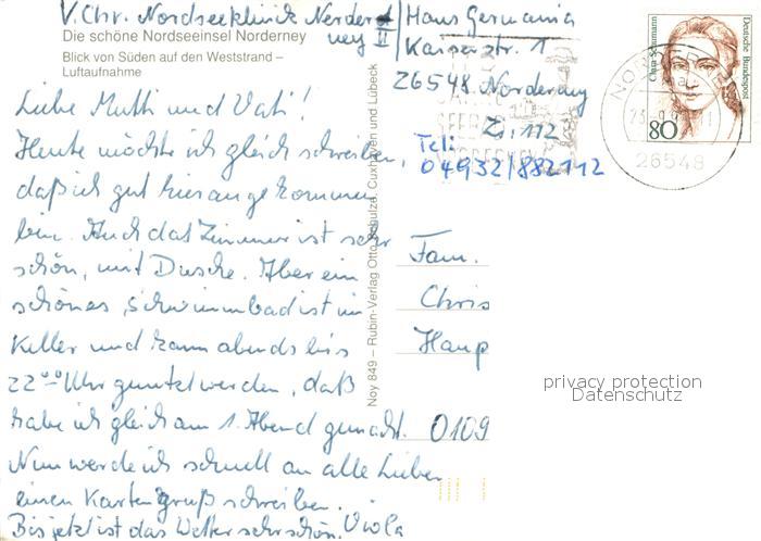 73717089 alte Postkarte Norderney Nordseebad Fliegeraufnahme Weststrand postalisch gelaufen Erhaltung siehe scans [LiesaD40] KatCode: 11110003452020