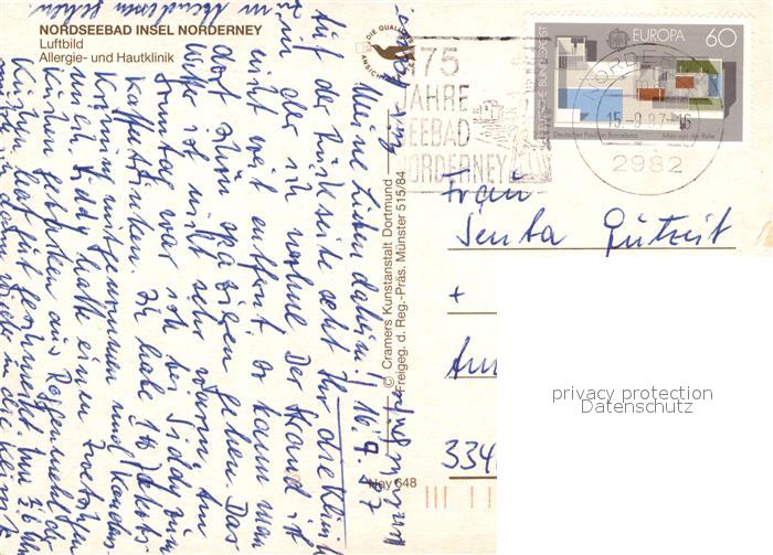73134893 alte Postkarte Norderney Nordseebad FliegeraufnahmeAllergie- Hautklinik postalisch gelaufen Erhaltung siehe scans [NatalD47] KatCode: 11110003452020