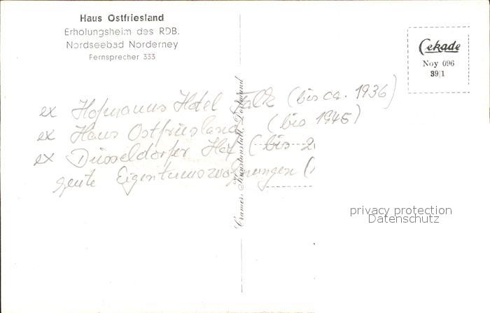 31704968 Norderney Nordseebad Haus Ostfriesland Erholungsheim des RDB postalisch nicht gelaufen Erhaltung siehe scans KatCode: 11110003452020