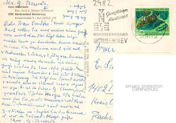 73870173 alte Postkarte Norderney Nordseebad Haus Waterkant Gastraeume Hallenbad postalisch gelaufen Erhaltung siehe scans [WerneD78] KatCode: 11110003452020