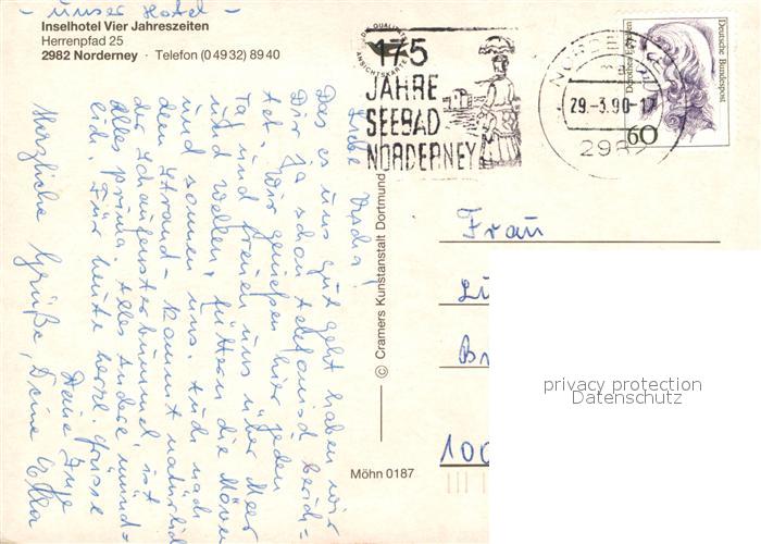 73204510 alte Postkarte Norderney Nordseebad Inselhotel Vier Jahreszeiten postalisch gelaufen Erhaltung siehe scans [FriedD77] KatCode: 11110003452020