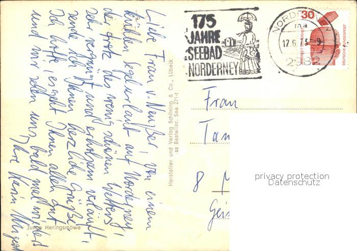 72410903 alte Postkarte Norderney Nordseebad Junge Heringsmoewe postalisch gelaufen Erhaltung siehe scans KatCode: 11110003452020