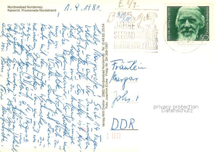 73635662 alte Postkarte Norderney Nordseebad Kaiserst Promenade Nordstrand Fliegeraufnahme postalisch gelaufen Erhaltung siehe scans [WerneD78] KatCode: 11110003452020