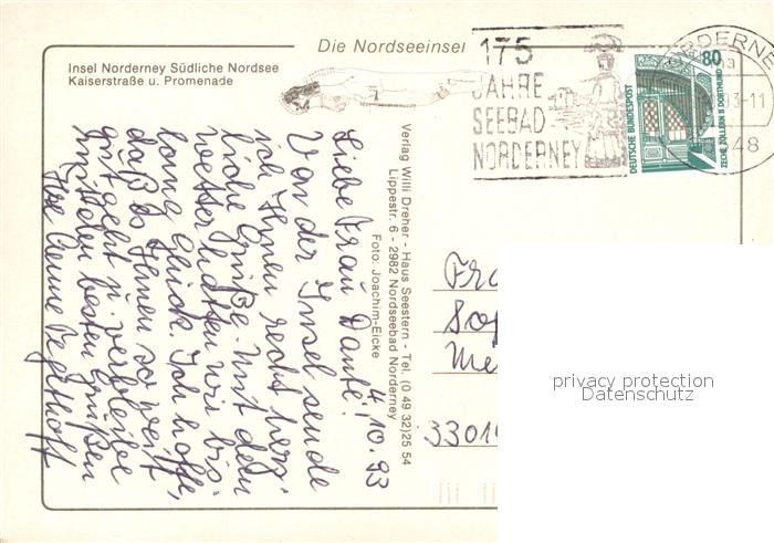 73540245 alte Postkarte Norderney Nordseebad Kaiserstrasse und Promenade postalisch gelaufen Erhaltung siehe scans [WerneD78] KatCode: 11110003452020