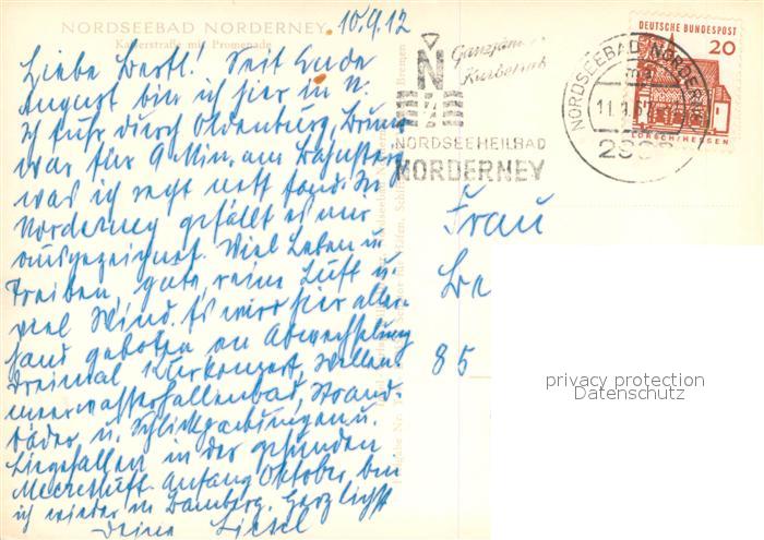 73726833 alte Postkarte Norderney Nordseebad Kaiserstrasse und Promenade postalisch gelaufen Fliegeraufnahme Erhaltung siehe scans [FriedD77] KatCode: 11110003452020