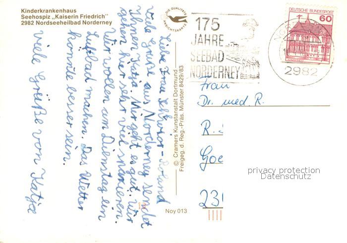 73723514 alte Postkarte Norderney Nordseebad Kinderkrankenhaus Seehospiz Kaiserin Friedrich Fliegeraufnahme postalisch gelaufen Erhaltung siehe scans [WerneD78] KatCode: 11110003452020