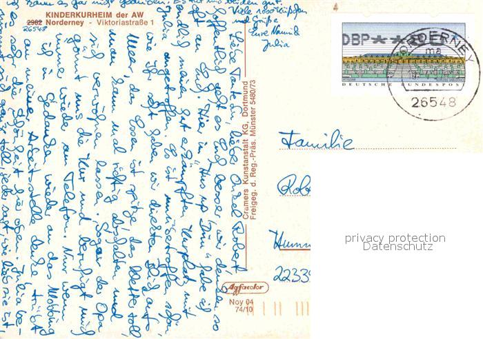 72677065 alte Postkarte Norderney Nordseebad Kinderkurheim der AW Fliegeraufnahme postalisch gelaufen Erhaltung siehe scans [WerneD78] KatCode: 11110003452020