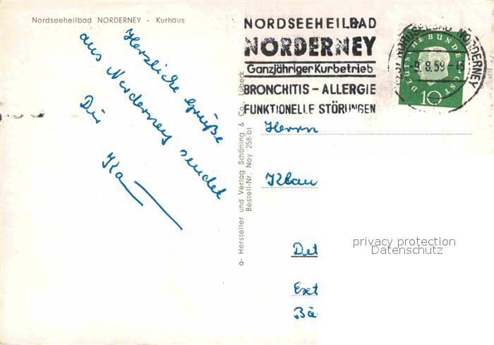 72800802 alte Postkarte Norderney Nordseebad Kurhaus postalisch gelaufen Erhaltung siehe scans [FriedD77] KatCode: 11110003452020