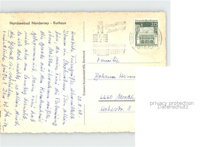 72256634 alte Postkarte Norderney Nordseebad Kurhaus postalisch gelaufen Erhaltung siehe scans KatCode: 11110003452020