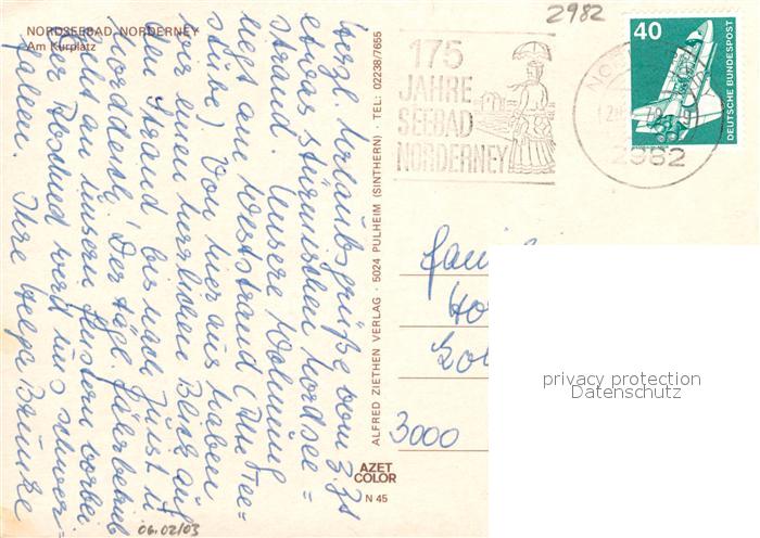 72939157 alte Postkarte Norderney Nordseebad Kurplatz postalisch gelaufen Erhaltung siehe scans [PaolaD17] KatCode: 11110003452020