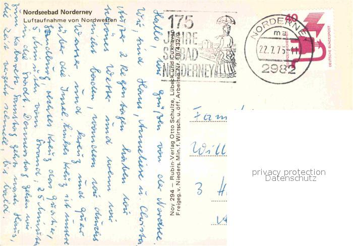 72833596 alte Postkarte Norderney Nordseebad Luftaufnahme von Nordwesten Wappen postalisch gelaufen Erhaltung siehe scans [FriedD77] KatCode: 11110003452020
