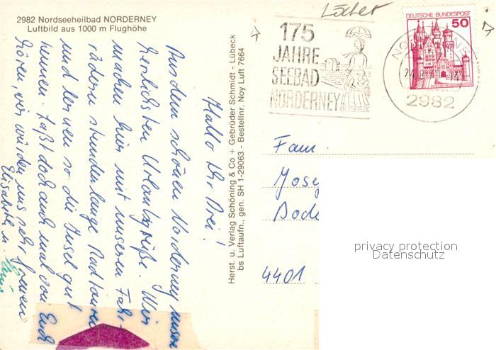 73159672 alte Postkarte Norderney Nordseebad Luftbild aus 1000 m Flughoehe postalisch gelaufen Erhaltung siehe scans [FriedD77] KatCode: 11110003452020