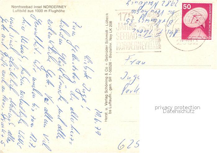 73294301 alte Postkarte Norderney Nordseebad Luftbild aus 1000 m Flughoehe postalisch gelaufen Erhaltung siehe scans [FriedD77] KatCode: 11110003452020