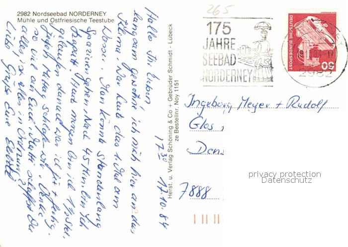 72670202 alte Postkarte Norderney Nordseebad Muehle und Ostfriesische Teestube postalisch gelaufen Erhaltung siehe scans [LiesaD40] KatCode: 11110003452020